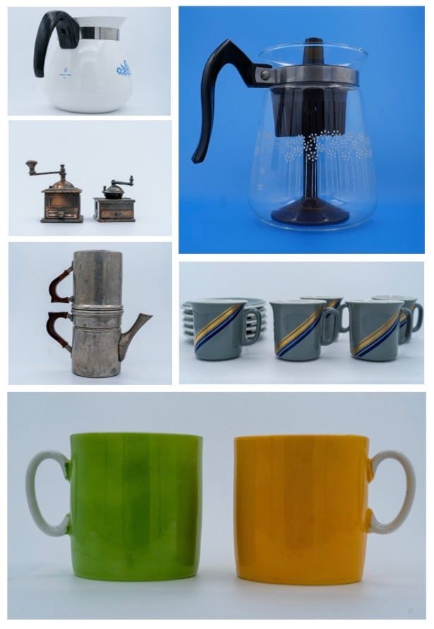 If you know me, you know I’m rarely without a mug — so I'm especially excited for this one. It’s a mix of Corning Ware classics, Cory glass percolators, Italian ACF espresso cups, Japanese modernist mugs, and a few other unique caffeine treasures waiting to be claimed.