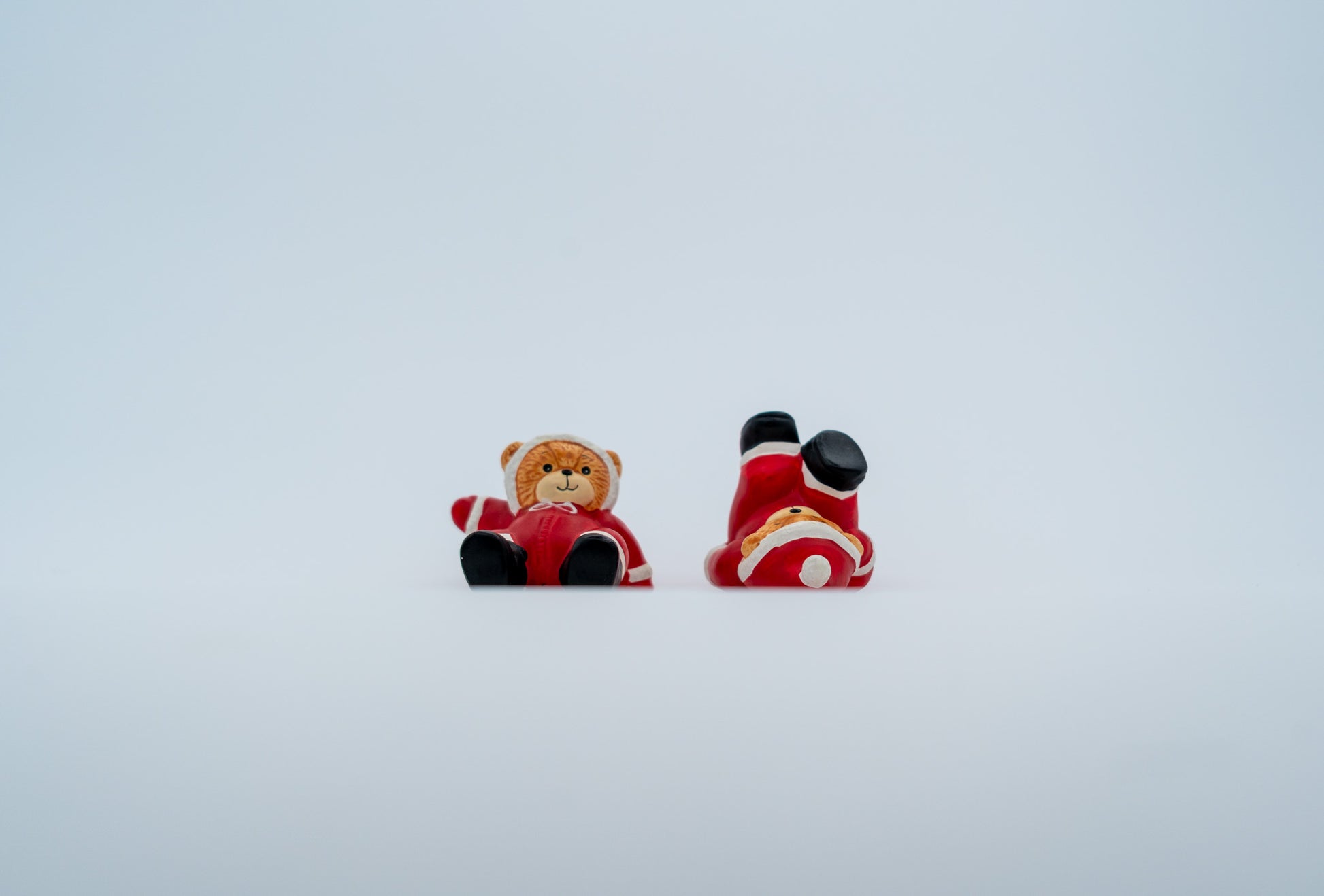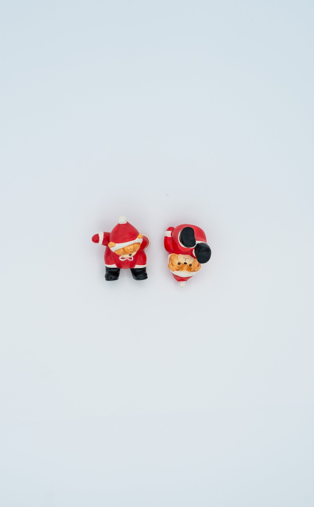 Lucy & Me Enesco magnet bears from 1984, Made in Korea, wearing red holiday outfits and looking like they just tumbled out of a vintage gift shop display. Cute faces, bright paint, and magnets ready to cling dramatically to your fridge like it’s 1984 again.